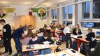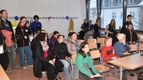 Der Jahrgang 7 arbeitet praxis- und handlungsorientiert. Ein Musikworkshop mit dem Rapper Matondo eröffnet den Tag. Ergänzt wurde das Programm durch Europarallyes sowie Workshops zu Konfliktbewältigung und Kinderrechten.