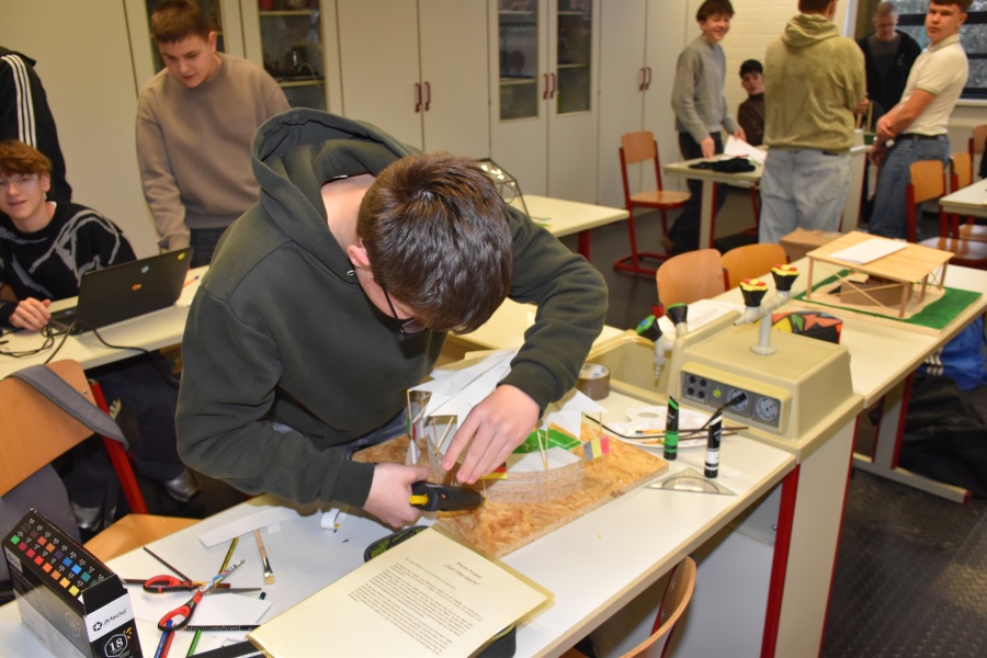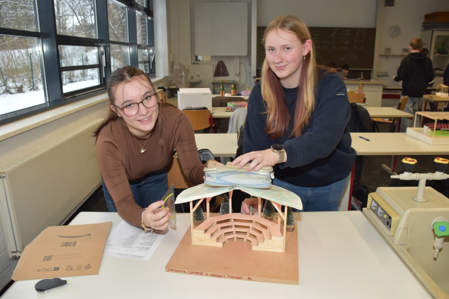 Im Jahrgang 8 stand die Verbindung von Europa und Technik im Vordergrund. In einem fächerübergreifenden Physikprojekt beschäftigen sich die Schülerinnen und Schüler über mehrere Stunden hinweg mit Dächern europäischer Fußballstadien. Dieses Projekt ist zugleich an den Wettbewerb der Junior-Ingenieur-Kammer angebunden.