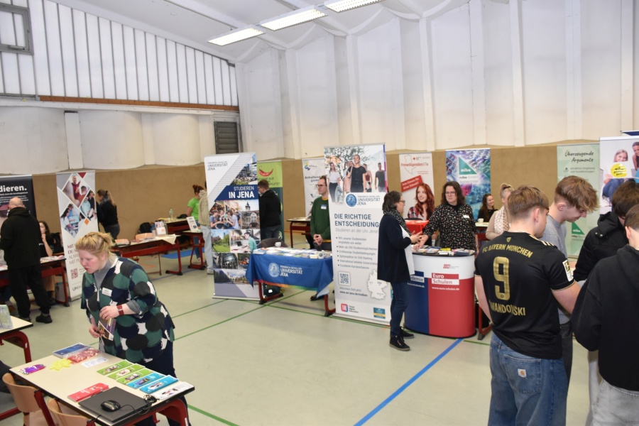 Im Jahrgang 11 lag der Schwerpunkt auf einer Berufs- und Studienorientierung. In einer BSO-Messe mit 25 Ständen erhielten die Interessierten direkte Kontakte zu Hochschulen und Institutionen. Ergänzt wurde die Messe durch Vorträge und Workshops, unter anderem zu Studiengängen an der Martin-Luther-Universität, zum wissenschaftlichen Arbeiten, zu Studienangeboten der HTWK Leipzig sowie zum Projekt "Schule &Steuern" in Zusammenarbeit mit dem Finanzamt Bitterfeld.