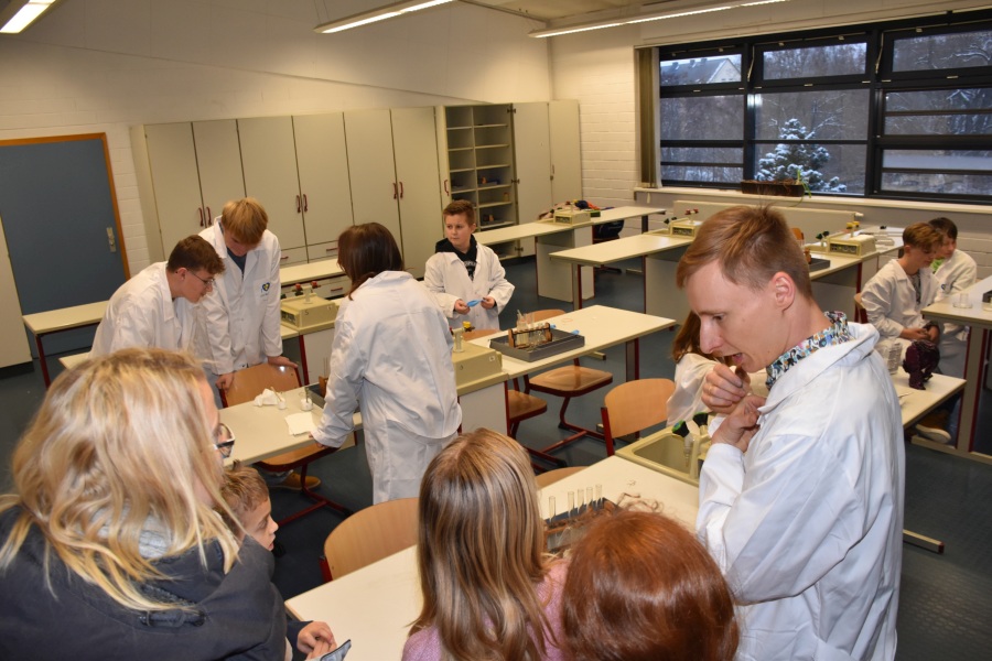 Ab 16.00 Uhr erhielten interessierte Eltern und Schülerinnen und Schüler Informationen zur zweiten Fremdsprache in der zukünftigen Klassenstufe 7, und ab 17.00 Uhr folgten Informationsangebote zu den Wahlpflichtfächern der zukünftigen Klassenstufe 9, bei denen Fragen gestellt und individuelle Beratungen in Anspruch genommen werden konnten.
