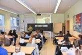 Der Jahrgang 7 arbeitet praxis- und handlungsorientiert. Ein Musikworkshop mit dem Rapper Matondo eröffnet den Tag. Ergänzt wurde das Programm durch Europarallyes sowie Workshops zu Konfliktbewältigung und Kinderrechten.
