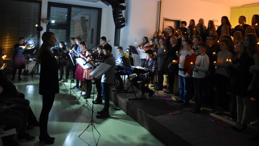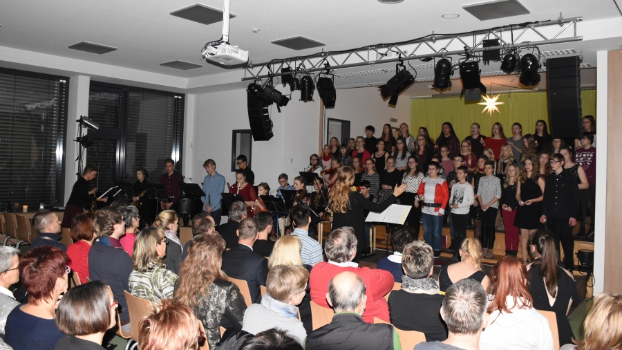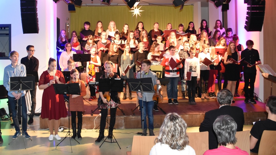 Lange probten die Schüler unseres Gymnasiums, um Ihnen, werte Gäste, ein buntes weihnachtliches Programm vom altbekannten Weihnachtslied bis hin zu modernen Melodien präsentieren zu können. Eröffnet wurde unser diesjähriges Konzert vom Schulchor und von der Instrumentalgruppe mit der schönen Melodie "Advent ist ein Leuchten".
