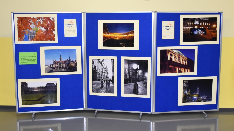 Nachdem wir viele tolle Bilder erhalten hatten, fiel uns die Entscheidung nicht leicht, eine Bilderauswahl für die Ausstellung zu treffen. Dreißig Bildern gelang der Sprung in die Veröffentlichung und dank großartiger Unterstützung durch ORWONet konnten wir die Bildwände im Schulhaus bestücken.